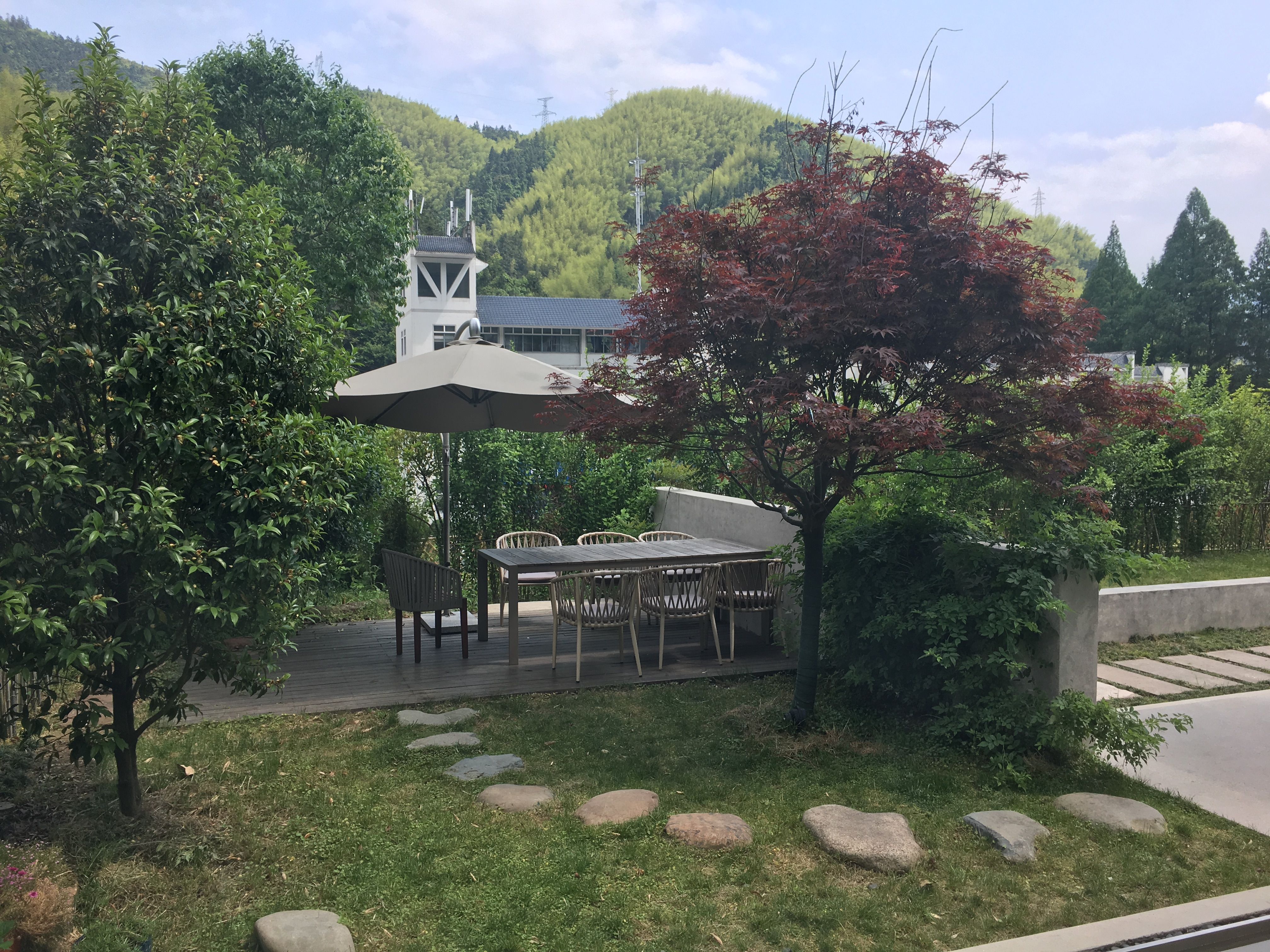 如果是住宿的客人,晚上推開窗,到露臺(tái)去賞月,遠(yuǎn)眺黃山的美景,更是一份難得的享受。山坡邊竹林樹影婆娑,頗有“疏影橫斜水清淺,暗香浮動(dòng)月黃昏”的意境