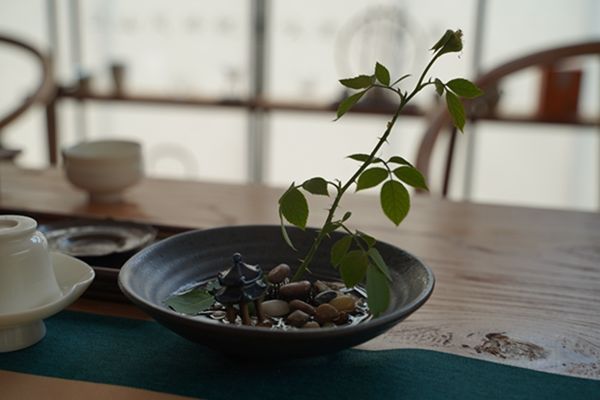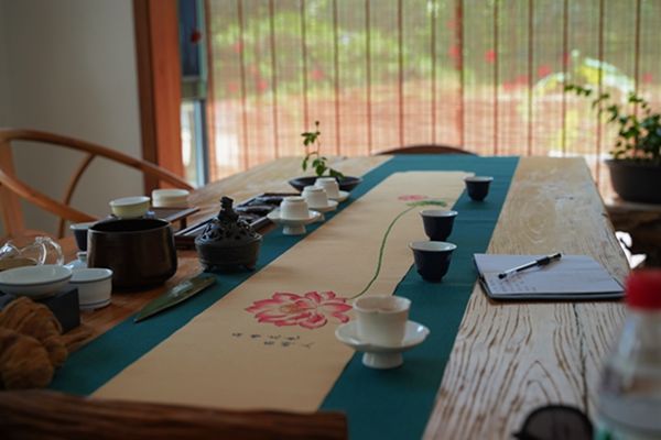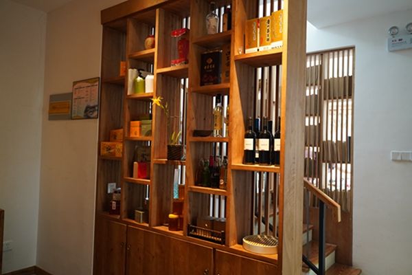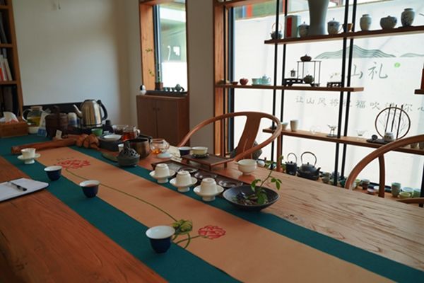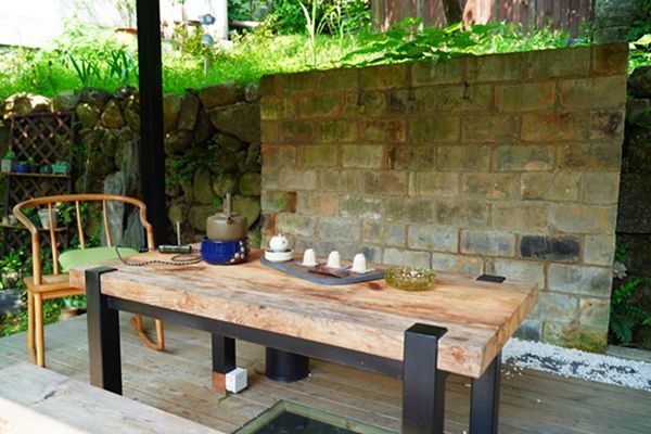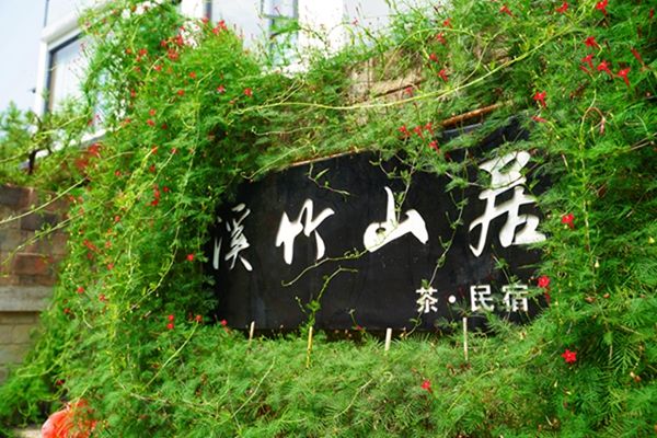 大門口,溪竹山居四個大字引入眼簾,綠葉蒼翠間點綴著一顆顆盛開的滿天星,巧妙將原生態的植物引入民宿整體裝修設計中,頗有清新美好的意蘊。進入大門即可見到極佳的設計美學,東方美的藝術在此得到完美的展現。大廳內分區合理,進門處是品茗茶室,各類茶具一應俱全。